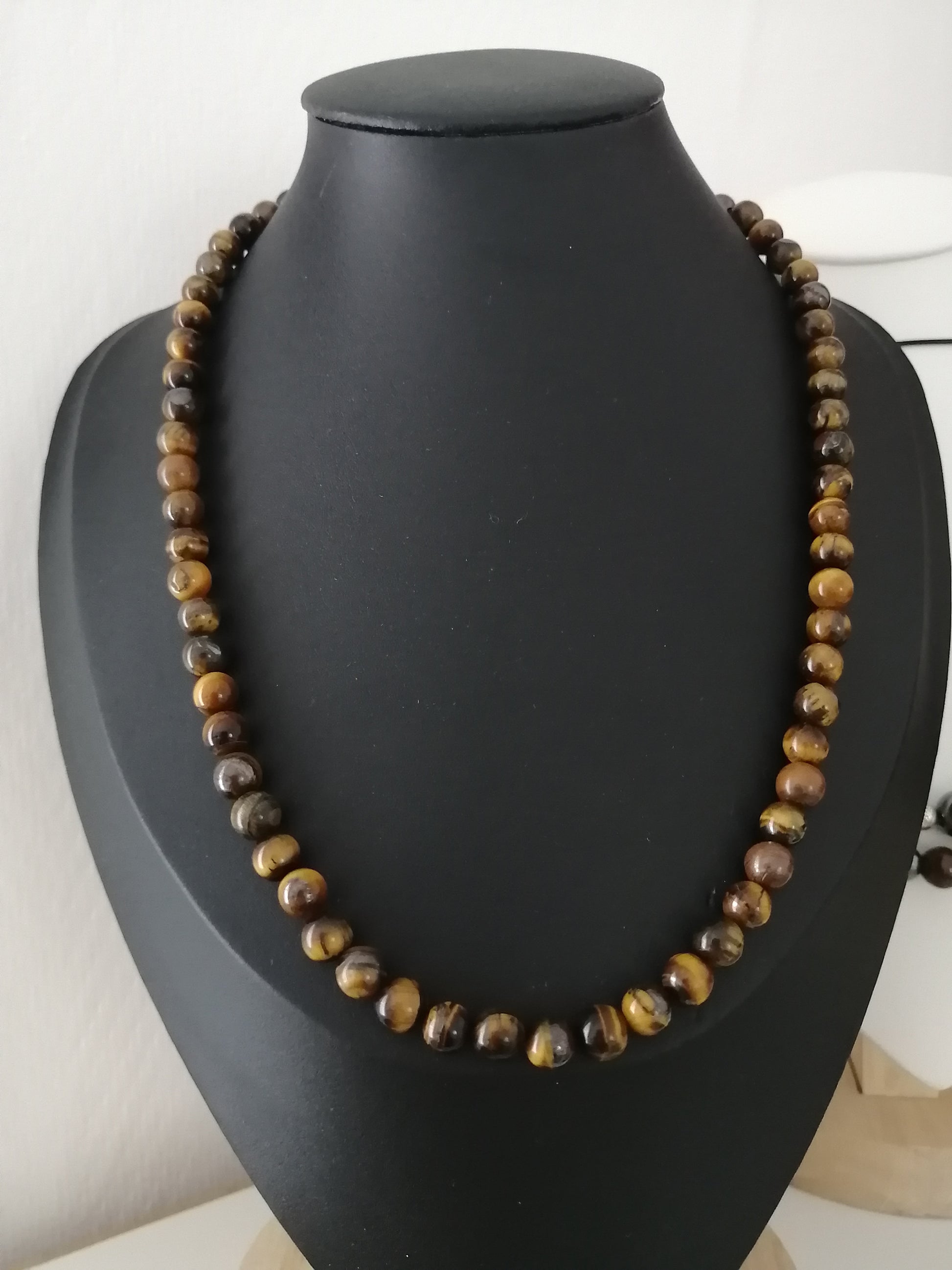 In contact with your skin, this Tiger's Eye bracelet protects you and brings strength and courage. This bracelet is mounted on a resistant elastic thread.