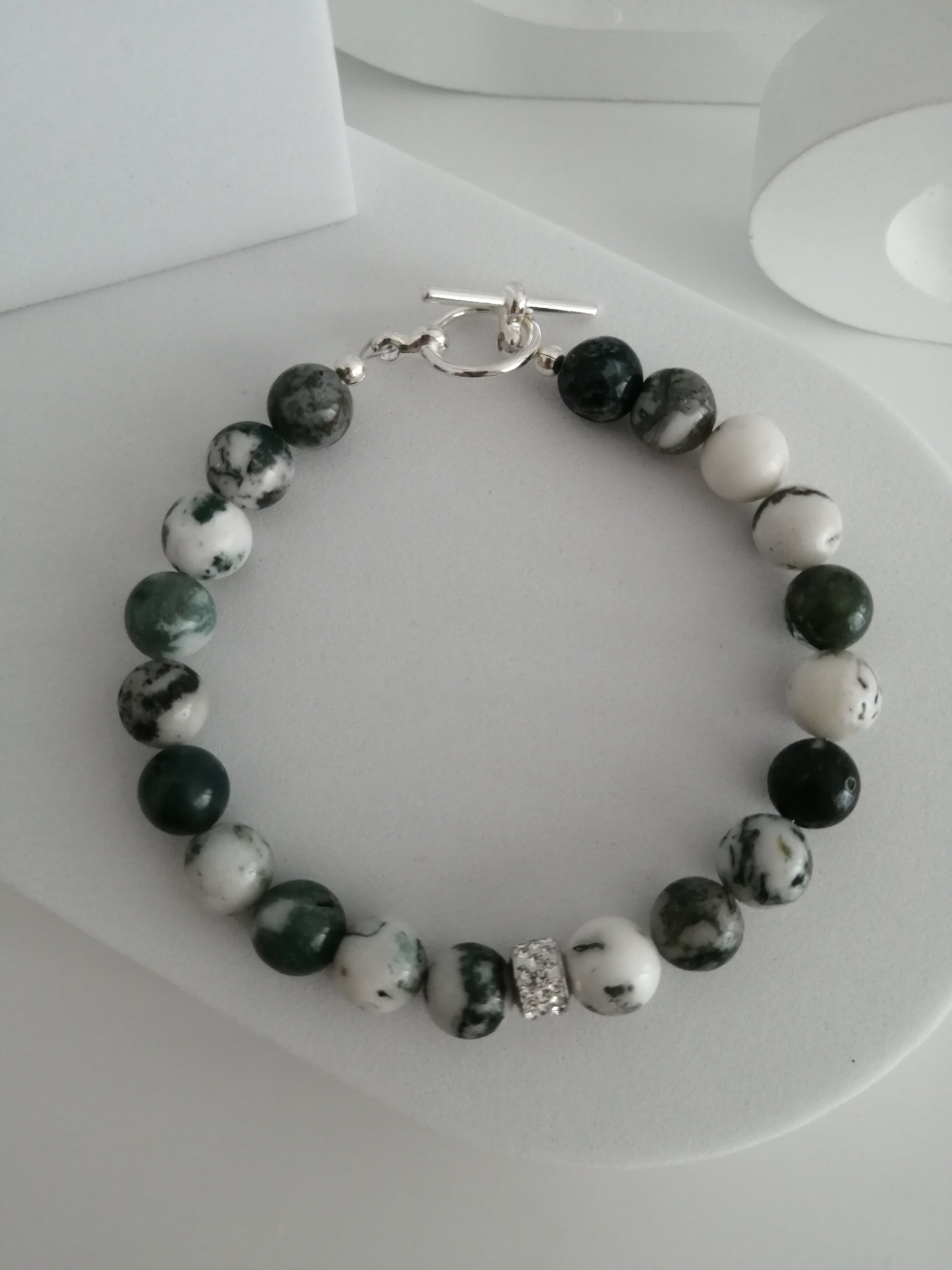 Armband van 8 mm boomagaat, met kristal-tussenstukaccessoire.