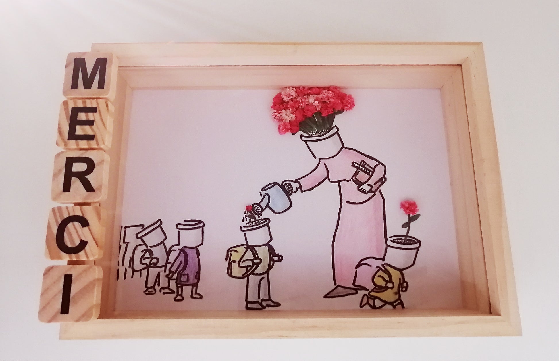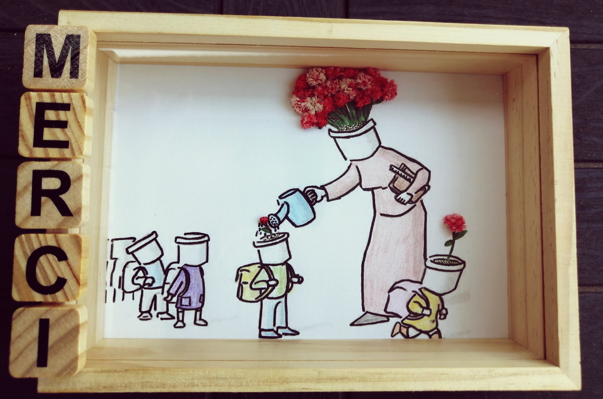 Een mooie manier om je waardering te tonen aan je favoriete juf, meester of meesteres. Een lijst met een prachtige foto en natuurlijke gedroogde bloemen. Deze lijst heeft niet veel woorden nodig om "dankjewel" te zeggen.