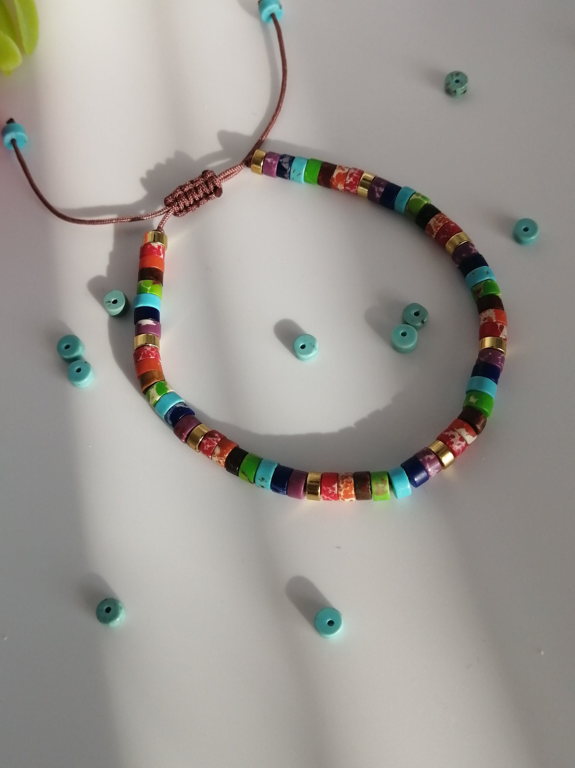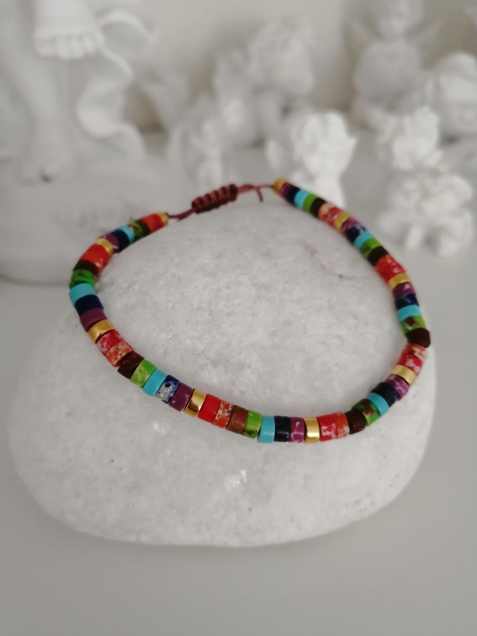 Bracelet réglable Arc-en-ciel en petits pierres de Jaspe.